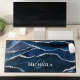 Agate Geode Navy Blue Silver Glitzer Monogram Schreibtischunterlage