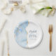 Diese eleganten, modernen Hochzeitsfeier-Teller sind mit einem kinderblauen Aquarell-Design ausgestattet, das mit vergoldetem Imitat-Glitzer besticht. Einfache Anpassung des kohlegrauen Textes auf weißem Hintergrund, mit den Namen der Paare in handgeschriebener Kalligrafie über einen großen, hellblauen Ampersand.