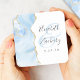 Dieses elegante, moderne Hochzeitsgeschenk-Untersetzer besticht durch ein Baby-Blue Aquarell Geode Design mit vergoldetem Imitat Glitzer. Einfache Anpassung des kohlegrauen Textes auf weißem Hintergrund, mit den Namen der Paare in handgeschriebener Kalligrafie über einen großen, hellblauen Ampersand.