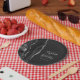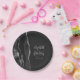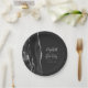 Diese eleganten, modernen Hochzeitsfeier-Teller zeichnen sich durch ein schwarzes Aquarell-Design aus, das mit Imitaten silbernen Glitzer besticht. Einfach den silbergrauen Text auf schwarzem Schieferboden anpassen, mit den Namen der Braut und des Bräutigams in handschriftlicher Kalligraphie über einen großen, blassgrauen Ampersand.