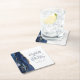 Dieses elegante, moderne Hochzeitsgeschenk-Untersetzer besticht durch eine marineblau-blaue Aquarellfarbe, die mit vergoldetem Imitat-Glitzer bestickt wurde. Einfache Anpassung des kohlegrauen Textes auf weißem Hintergrund, mit den Namen der Braut und des Bräutigams in handgeschriebener Kalligrafie über einen großen, hellblauen Ampersand.