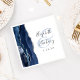 Diese eleganten, modernen Hochzeitsnapkins sind mit einem marineblau-Aquarell-Geode-Design bestickt mit Imitaten silbernen Glitzer. Einfache Anpassung des kohlegrauen Textes auf weißem Hintergrund, mit den Namen der Braut und des Bräutigams in handgeschriebener Kalligrafie über einen großen, hellblauen Ampersand.