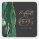 Agate Geode Script Smarald Green Gold Dark Wedding Quadratischer Aufkleber