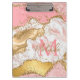 Diese Zwischenablage ist mit einem eleganten und glamourösen Hintergrund aus rosa und weiß-agatem Marmor mit goldenen Glitzer-Akzenten in Imitaten ausgestattet. Das Monogramm kombiniert handgeschriebene Skripte mit modernen serifenlosen Schriftart für ein elegantes und raffiniertes Aussehen. Dies wird das ideale Geschenk, da es mit einem Namen und Initial angepasst werden kann. Die Sequinen und die bedrückte Textur schaffen die perfekte Mischung aus Chic und Grunge.