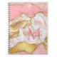 Dieses Notizbuch verfügt über einen eleganten und glamourösen Hintergrund aus rosa und weiß-agatem Marmor mit Imitaten goldenen Glitzer Akzente. Das Monogramm kombiniert handgeschriebene Skripte mit modernen serifenlosen Schriftart für ein elegantes und raffiniertes Aussehen. Dies wird das ideale Geschenk, da es mit einem Namen und Initial angepasst werden kann. Die Sequinen und die bedrückte Textur schaffen die perfekte Mischung aus Chic und Grunge.