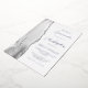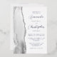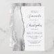 Der links Rand dieser eleganten, modernen Hochzeitseinladung besticht durch eine grau-farbene, matte Grenze, die mit Imitaten silbernen Glitzer bestickt ist. Der anpassbare Text kombiniert Skript und serifenlose Schriftart in realer Silberfolie auf weißem Hintergrund. Die Rückseite weist ein passendes Drehdesign auf.