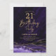 Lila und goldgelb am 21. Geburtstag Party Einladung. Elegantes modernes Design mit Aquarellfarben-marmorgeode Hintergrund, Imitate Glitzer Gold und Typografie Skript-Schriftart. Die trendige Einladungskarte eignet sich perfekt für eine stilvolle Damenfeier. Gedruckte Zazzle Einladungen oder Sofortdownload digitalen druckbaren Vorlage.