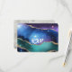 Wirklich kosmisches Aussehen mit einer Fusion von vergoldetem Geodator und Sterne gefüllt Nacht Himmel in schönen Tönen lila, blau und aquamarin. Mit leicht zu bearbeitenden Texten und extravaganter Kalligrafie ist es eine großartige Wahl für Paare, die etwas suchen, das nicht blumig ist und sich von der Masse abhebt.