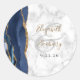 Agate Navy Blue Gold Script Marmorhochzeit Runder Aufkleber