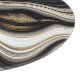 Modernes ovales Schneidbrett mit geschmeidigem, flüssigem Marmor Schwarz-weiß und goldfarbenem Hintergrund.