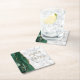 Dieses elegante, moderne Hochzeitsfest-Untersetzer besticht durch ein smaragdgrünes Aquarell-Dekor mit vergoldetem Imitat auf einem Hintergrund aus weißem und grauem Marmor. Die Namen der Braut und des Bräutigams lassen sich in goldfarbener Handschrift leicht an einen großen, hellgrauen Ampersand anpassen.