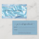 This elegant modern appointment card features an image of pastel blue silk, framed on the top and bottom by blue and white watercolor agate borders trimmed with sparkly silver faux glitter. Personalize it with your name in off-black handwriting-style script and your business information in sans serif font. On the reverse, the words "your next appointment" appear in off-black handwriting script on a blue background, along with spaces for the date and time. Edit the italic text at the bottom with additional policies or information for your clients or customers.