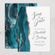 Agate Teal Rose Gold Modern Script Wedding Save The Date
