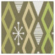 Ein Retro-Kunstmuster der 50er Jahre mit geometrischen Hohldiamanten und Sternen im Stil der Atomzeit. Die Farben Gelb-Grün, Grün mit Chartreuse, Bräune und Beige sind mehrfarbig.