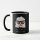 This Mug features a woman with grey hair, dark pink lips, and sleek black cat-eye glasses. The design is striking and modern, with a minimalist feel that is perfect for any stylish individual.