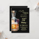 A modern birthday party invitation with bold numbers, a bottle of whiskey and a glass of whiskey. Customize the details for a unique and cool birthday celebration.