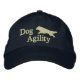 Dieser bestickte Hut hat eine cremefarbene, springende Border Collie Silhouette über das Wort "Agility", mit "Hund" rechts. Fantastischer Border Collie Hut für jeden, der mit seiner Hunde experimentiert.