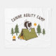 Niedlicher Hund Agility Decke mit Border Collie springen über ein Zelt mit seinem Freund drinnen. Canine Agility Camp Text kann personalisiert sein.