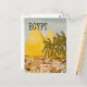 Große Pyramiden im Hintergrund, eine Stadt in Sepia-Farben und anmutige Palmen im Vordergrund.