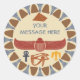 Dieser Rundaufkleber ist bereit, mit einer eigenen, individuellen Nachricht personalisiert zu werden. Es begleitet eine Collage von Grafiken, die vom alten Ägypten inspiriert wurden. In meinen Abbildungen sind eine ägyptische Pyramide, ein geflügter Skarabäenkäfer, ein Lebensmotiv, ein Motiv für das Hochzeitauge und ein Falkenmotiv aus dem Set, das auf einem sandfarbenen Hintergrund und umgeben von einem Lotusgestalt dargestellt ist.