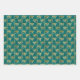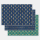 Trio von Geschenkverpackungsblättern mit verschiedenen ägyptischen Hieroglyphen in Goldmustern auf dunkelblauem und aquamarinem Hintergrund