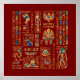 Ägyptische Hieroglyphen und Gottheiten auf rot Poster