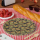 Eine elegante Papierplatte mit einem Muster traditioneller ägyptischer Motive, Papyrus und Lotus, auf schwarzem Hintergrund. Dieses Muster ist Teil der Posh- und Painterly "Egyptian" Kollektion und kann leicht an jede Papierplatte angepasst werden.