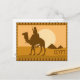 Ein fabelhaftes ägyptisches Plakat T - Shirt Design Set in der Wüste mit Pyramiden am Horizont.