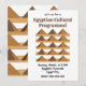 Einladung zum Kulturprogramm im Muster der ägyptischen Pyramiden, ursprünglich entworfen von Nisha Prabhu. Vollständig anpassbar. Personalisieren Sie mit Ihren Details. Visuell auffälliges Design: Die ikonischen Pyramiden und hieroglyphischen Motive ziehen sofort die Aufmerksamkeit auf sich und setzen einen eleganten und kulturell reichen Ton für Ihre Veranstaltung. Kulturelle Bedeutung: Mit der zeitlosen Bildsprache des alten Ägypten spiegelt die Einladung ein Thema von Geschichte, Mysterium und Raffinesse wider und macht Ihre Veranstaltung besonders und unvergesslich. Einzigartiger und thematischer Reiz: Perfekt für Kulturfestivals, Bildungsprogramme oder thematische Partys, vermittelt sie den Schwerpunkt und die Atmosphäre der Veranstaltung effektiv.