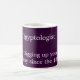 Eine lila und weiße Tasse mit weißem Text, in der es heißt: "Ägyptologe - Gravur der Mumie seit dem 19. Jahrhundert". Ich wählte die 1800er Jahre, weil während die Leute vorher das alte Ägypten studierten, die Dinge erst im 19. Jahrhundert wirklich in Gang kamen, als es plötzlich sehr beliebt wurde.