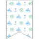 Eine süße, themed nautischfahne, zum der Vollenden-Touch Ihrer Babydusche hinzuzufügen. "Ahoi sie zu kennzeichnen ist ein Junge" auf einzelnen Wimpeln in den weißen Buchstaben auf einem blauen Hintergrund. Wörter werden durch die Wimpel getrennt, die ein inspiriertes nautischmuster kennzeichnen, das vom Anker, vom Rad des Schiffs und von den Segelboot-Silhouetten mit einer blauen/grünen Watercolorbeschaffenheit gebildet wird. Kaufen die gesamte Seebaby-Sammlung für koordiniereneinzelteile für Ihre Babyparty.