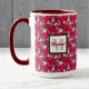 Rote und weiße Ahornkappenfiguren auf Holzkohle-Hintergrund. (Rosa Hintergrundfarbe ist ebenfalls verfügbar).