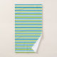 Ahorn verlasse blaues und grünes Badetuch-Set. Es zeigt wunderschöne Ahorn-Blätter in blauen und grünen Wirbel und Polka-Punkte. Das Handtuch weist ein gestreiftes Muster mit grünen und blauen Streifen auf, und das Waschlappen ist grün und massiv.