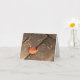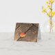 Ein Ahornblatt aus Single auf verwitterten Holzplatten steht für die Herbstsaison. Orangefarbene und rote Blätter und braune, verwitterte Bretter zeigen die gedämpften Farben der Saison. Teilen Sie Ihre Liebe von Fall und Erntedank mit dieser leeren Grußkarte. Das minimalistische Foto ist auch als Plakat und als Postkarten erhältlich, die sich hervorragend für personalisierte Einladungen zum Erntedank eignen.