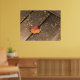 Ein Ahornblatt aus Single auf verwitterten Holzplatten steht für die Herbstsaison. Orangefarbene und rote Blätter und braune, verwitterte Bretter zeigen die gedämpften Farben der Saison. Teilen Sie Ihre Liebe von Fall und Erntedank mit diesem Poster. Das minimalistische Foto ist auch als Postkarte und als Grußkarten erhältlich, die sich hervorragend für personalisierte Erntedank-Einladungen eignen.