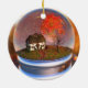 In einer "Schneekugel" befindet sich eine Herbstlandschaft mit einer Hütte, die von Ahorn- und Kirschbäumen überragt wird. Das umliegende Feld ist voll mit einem großen, grünen und goldenen Gras. Rose und Efeu besteigen die Mauer des kleinen Hauses. Der Ahornbaum ist in brillanter Herbstfarbe, und anstelle von Schnee gibt es Ahorn-Blätter in Rot-, Orange- und Gelbtönen, die rund um den Globus kreisen und das Gras bedecken.
