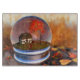 In einer "Schneekugel" befindet sich eine Herbstlandschaft mit einer Hütte, die von Ahorn- und Kirschbäumen überragt wird. Das umliegende Feld ist voll mit einem großen, grünen und goldenen Gras. Rose und Efeu besteigen die Mauer des kleinen Hauses. Der Ahornbaum ist in brillanter Herbstfarbe, und anstelle von Schnee gibt es Ahorn-Blätter in Rot-, Orange- und Gelbtönen, die rund um den Globus kreisen und das Gras bedecken.