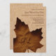 Auf einem eingegrabenen Hintergrund betont ein großes, mit Monogramm Ahornblatt diese blumige, staubige Einladung für die alte Hochzeit. Es wird auf dem Basispapier gezeigt; Ich empfehle jedoch das Gewicht und die Textur des Leinenpapiers.