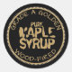 Gold und schwarze Ahornsirup mit feinem Text und prägnanter Kante. Generisches Etikett für Informationszwecke.