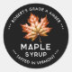 Ahornsirup-Konservenetikett mit rotem Blatt Runder Aufkleber