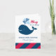 Die Babydusche mit Nautic-Thema-Dankeschön-Karte bietet einen Preppy-Wal mit herzförmigen Wasserspritzen, "Ahoy, das ist ein Junge!"-Formulierung, benutzerdefinierten Text und Stripe-Akzente. Die Farben sind hellblau, Stahlblau, Marineblau und Rot.