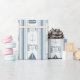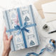 Dieses niedliche Verpackungspapier eignet sich hervorragend für Geschenke für kleine Jungen. Es enthält den Slogan "Ahoy it's a boy" und koordiniert nautische Akzente in Blau- und Cremetönen.
