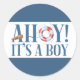 Ahoy It a Boy Blue Typografy Runder Aufkleber