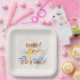 Der perfekte Teller für die perfekte Segel-Babydusche, die einen kleinen Jungen willkommen heißt! Kaufen Sie in loser Schüttung, um retten! In einem gefalteten Papierboot sitzt ein bezaubernder Seemann, der mit einer kleinen Ente neben ihm die Meereswellen entlang segelt. Ein Kompass und Spionglas sind im Hintergrund zu sehen, und ein kühner Schriftart sagt: "Ahoy! Es ist ein Junge!"