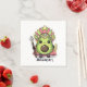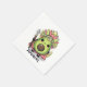 Ein niedlicher Avocado-Charakter ist als Aztekerkämpfer gekleidet, mit einer lebhaften Kopfbedeckung, Speer und Schild. Die großen Augen und die runden Wangen des Charakters verleihen seinem Krieger eine spielerische Touch. Der Text lautet "ahuacatl" (aztec for avocado)