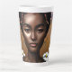KI-Kunst, die eine wunderschöne schwarze Frau Goddess mit einer Krone rosa Blume auf ihrem Kopf darstellt.