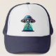 Alien und UFO-Grafik für diese in die UFOlogy. Eine niedliche Alien, die von einem UFO abgebrannt wird.