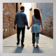 Ein Paar in der Liebe, das eine städtische Gasse mit Händen überquert. Stadtbild.