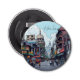 Comic buchen Stil ai Illustration der Innenstadt von Kalkutta, Indien Architektur, Motorräder und Autos. Ein Flaschenöffner mit einer Darstellung der geschäftigen Innenstadt mit Gebäude, Restaurants, Geschäften und Menschen auf ihren Motorrädern.