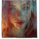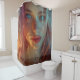 Dieser Duschvorhang hat eine KI Dame darauf.